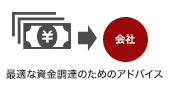 会社創業の融資か否か、会社の規模や調達の目的、金額等に応じてどの方法が最良かの検討を行い、実際の資金調達の手続きのサポートを行います。